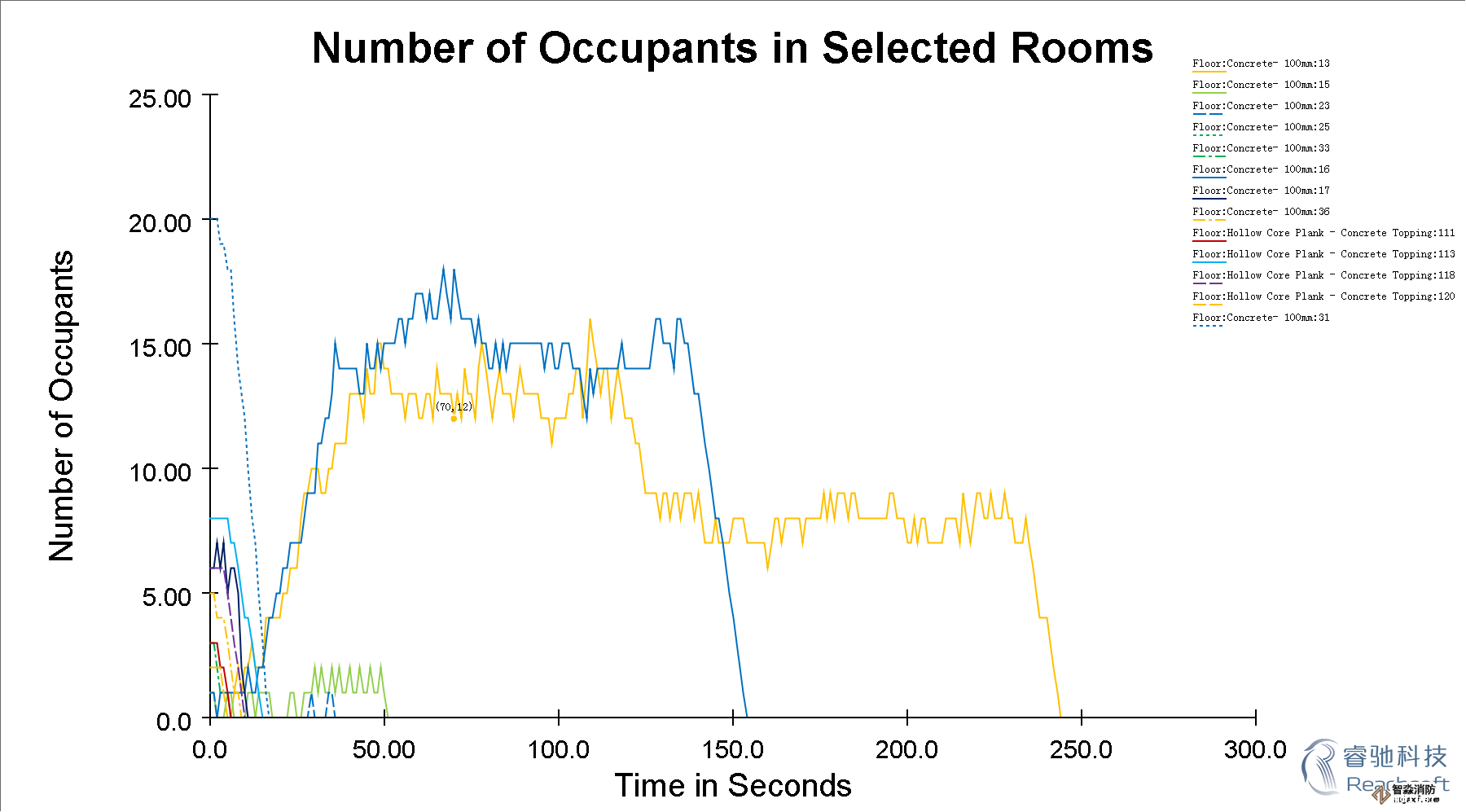 -除了3D模拟视图,Pathfinder还提供了2D时间关系曲线图的CSV文件和记录楼层疏散时间和出入口流通率的文本文件。